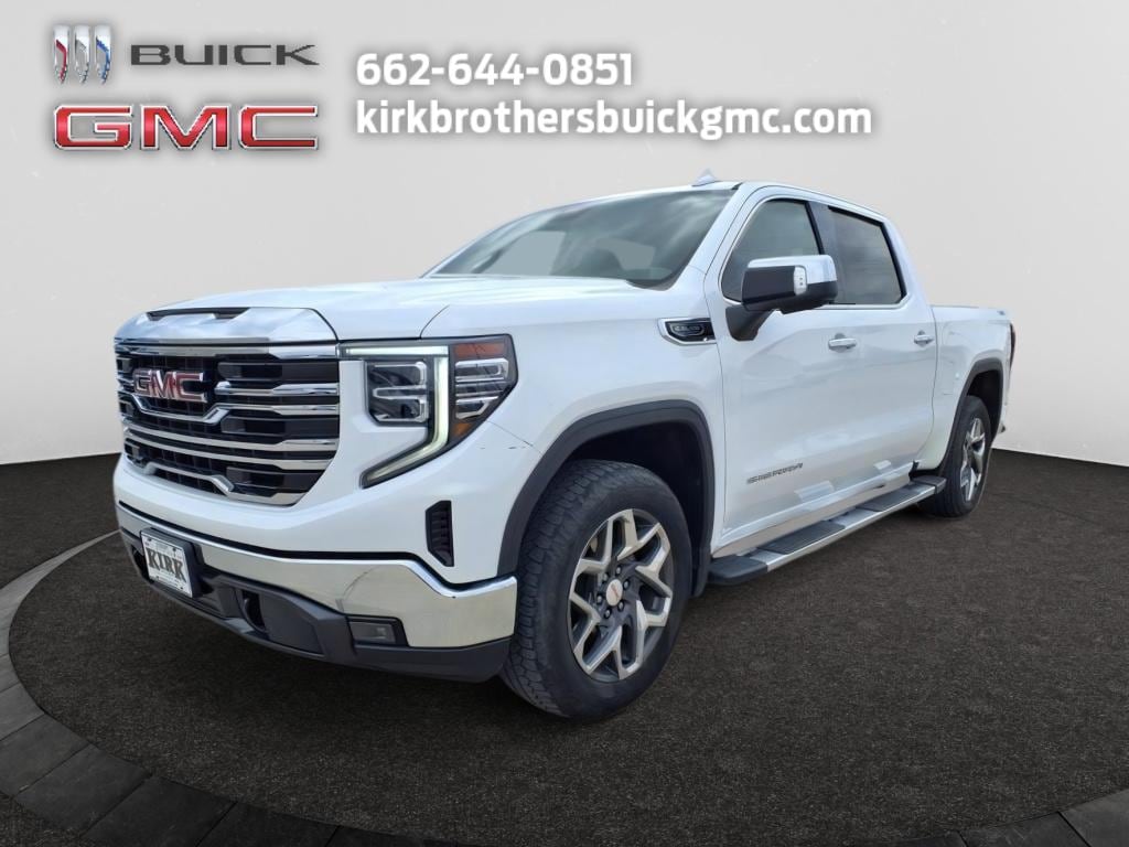 Ready for work or weekend adventure, this 2022 GMC Sierra 1500 SLT 4WD combines rugged capability with refined comfort. Powered by a V8, 5.3L gasoline engine, it delivers confident towing and passing power while maintaining a smooth ride thanks to its proven chassis. The Off-Road Package adds enhanced suspension and protective features for light trail duty, while four-wheel drive provides traction in rain, mud, or snow. This GMC Sierra SLT is well-equipped for daily convenience and connectivity: Hands Free Bluetooth keeps calls and audio streaming safe and simple, Remote Start brings comfort in extreme temperatures, XM Radio offers endless entertainment, and a Back-Up Camera makes parking and hitching effortless. Premium interior appointments and supportive seating make long drives comfortable, and practical cargo capacity handles jobsite gear or weekend toys with ease. Located in Greenwood, MS, this 1500 is competitively priced and you'll find it offers the best price for its condition and equipment in the area. A comprehensive inspection confirms it's ready to serve your driving needs with confidence. For a practical, powerful pickup that balances capability with modern tech, this 2022 GMC Sierra 1500 SLT 4WD is an excellent choice. Contact us to schedule a test drive and lock in the best local value today.